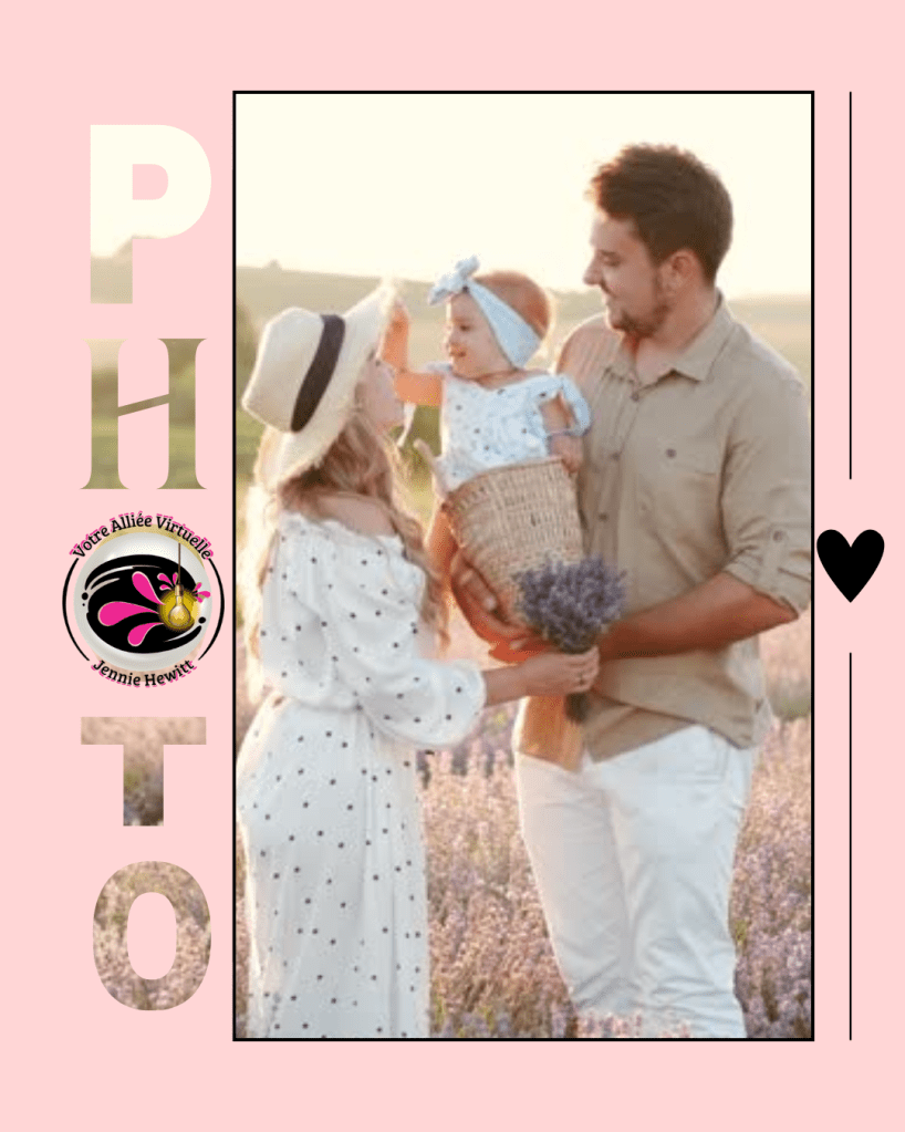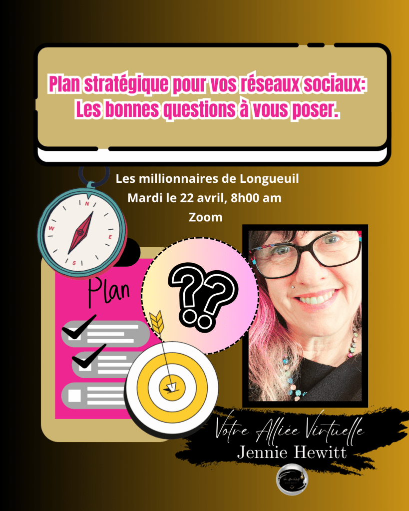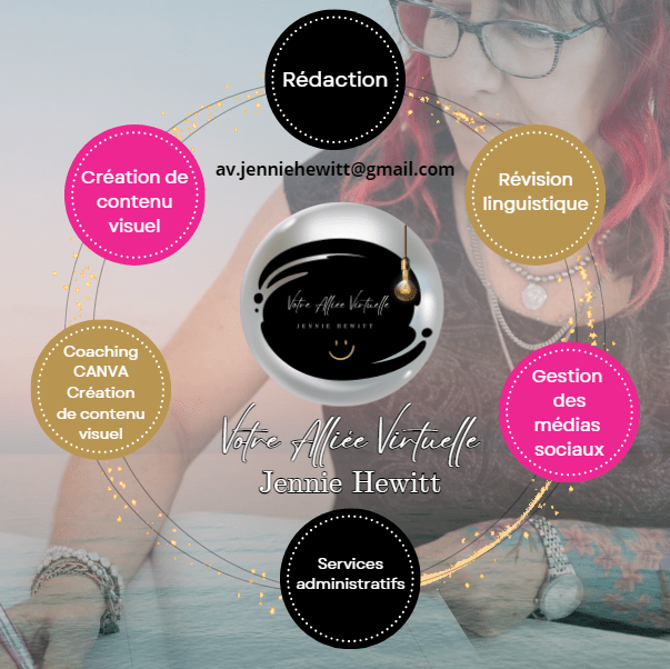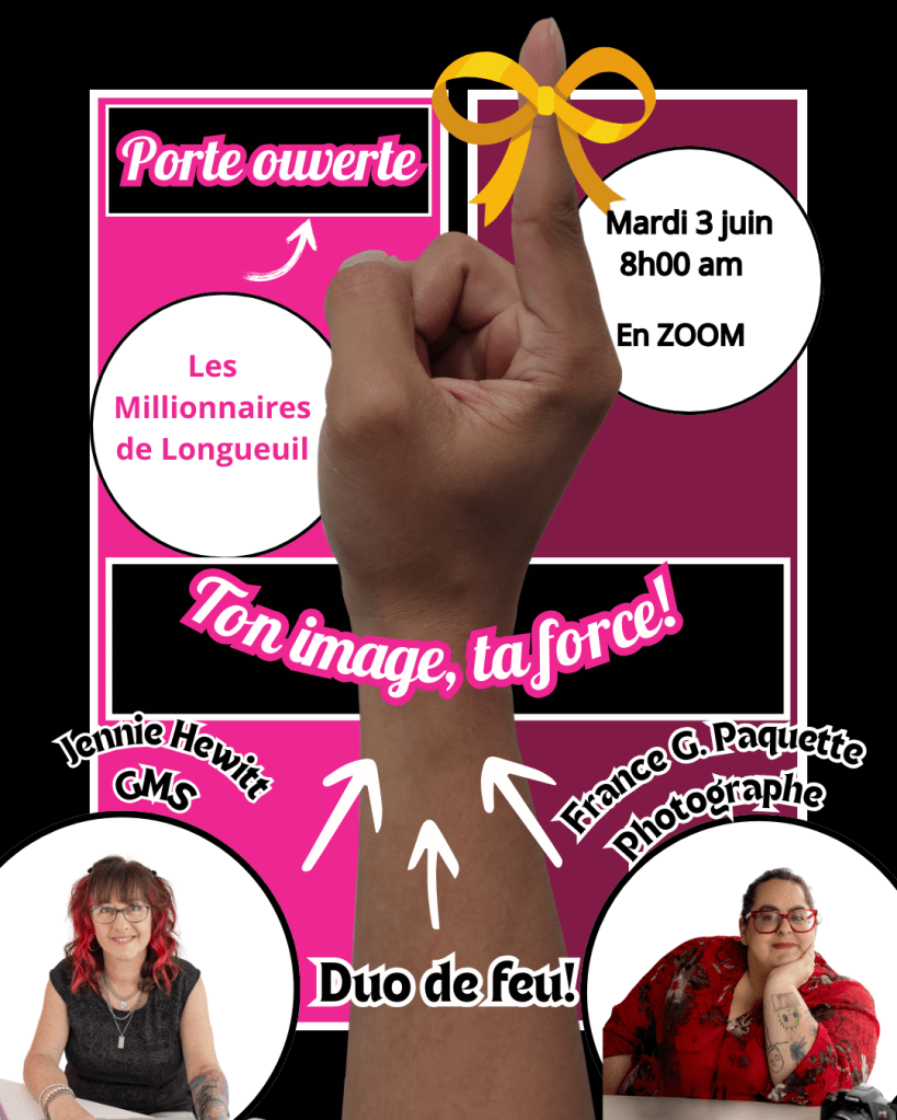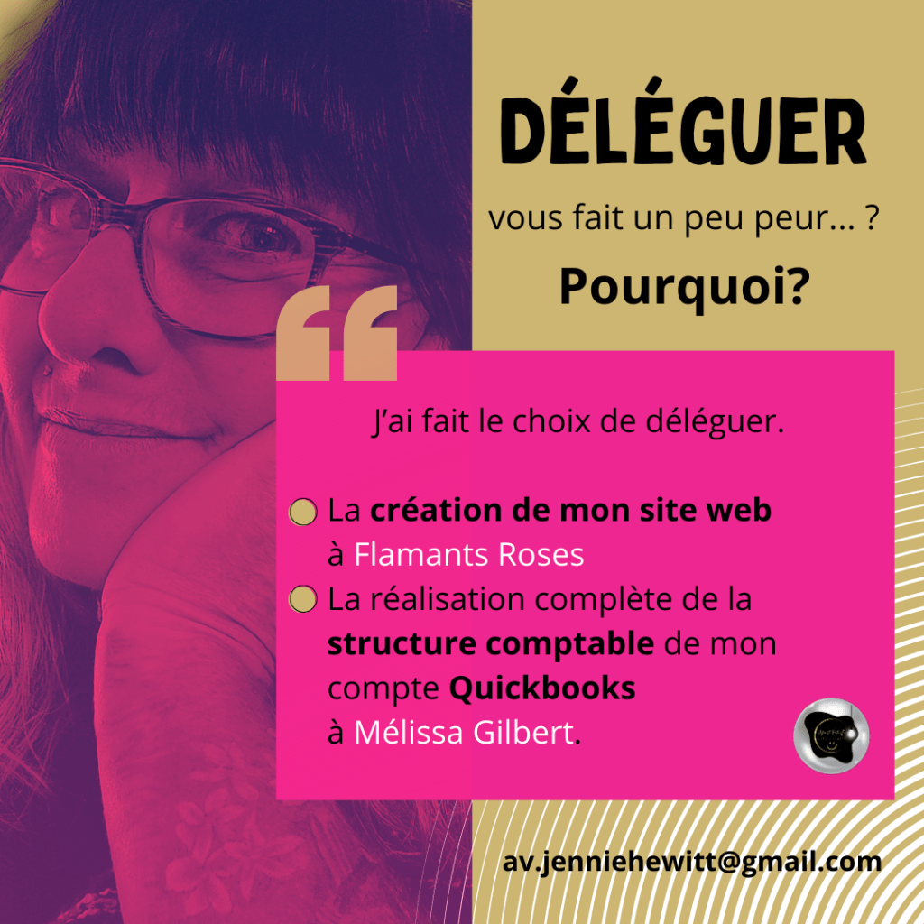 Tout d’abord, voici quelques visuels conçus pour mon entreprise, dont l’identité visuelle se distingue par son énergie vive, ses couleurs audacieuses (Rose flash, noir, blanc et doré) et son grain de folie assumé. 😅